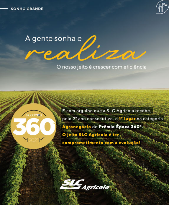 SLC Agrícola, one of the world’s largest producers of grains and fibers, received yet another recognition for its performance. The company is champion in the Agribusiness category of the 10th edition of the Época Negócios 360º yearbook. This is the second consecutive year that the company has received this distinction. The survey is carried out in partnership with Fundação Dom Cabral and evaluates over 400 companies from 25 sectors.