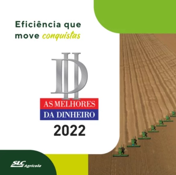 SLC Agrícola won, for the fifth consecutive year, the “Best of Money” award in the Agribusiness category. In 2022, the company presented the best overall performance in the dimensions analyzed and was highlighted in the “Human Resources” and “Innovation and Quality” categories, receiving first place in both.